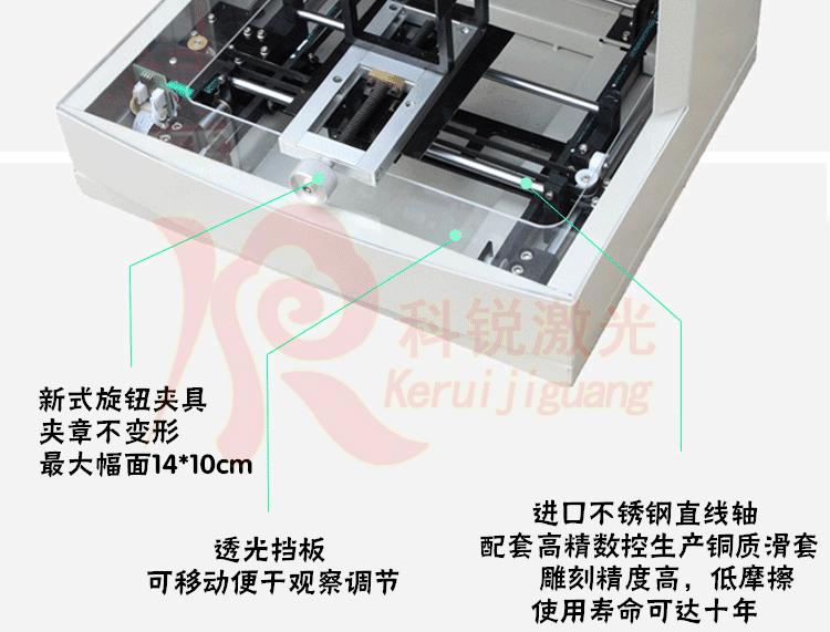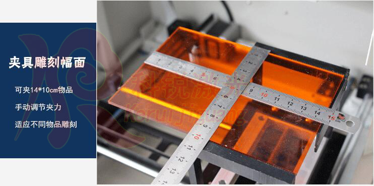 2、激光刻章机(电脑刻章机)合用于小面积的工艺品加工,在双色板、木板、竹片、无机玻璃板、布疋上刻制百般的图形和笔墨。